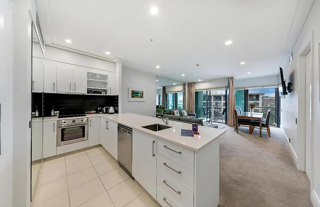 Stunning Two-Bedroom Viaduct Apartment Auckland lies in Auckland Central Business District with mainstream fashion stores along Queen Street, and trendy boutiques and oyster bars in the heritage buildings of Britomart, within reach of entertainment venues like The Civic Theatre, nearly 12 minutes' walk away.